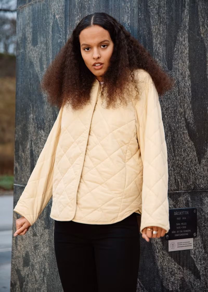 Quilting continues to reign this spring, adding tactile flair to everyday looks. Made with recycled polyester, our diamond-stitched coat makes a subtle statement when paired with luxe accessories.