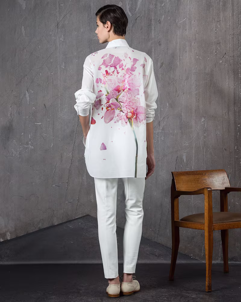The '70s still the decade continues to be a big talking point for Pre-Fall 2015, Swiss label Akris takes menswear influences with added edge for the modern woman, the three-piece suit had no retro affectations. Shattered single orchid, the deep purple, black, and bronze of the allover print used for a sleeveless trapeze gown were the collection's real beauty.