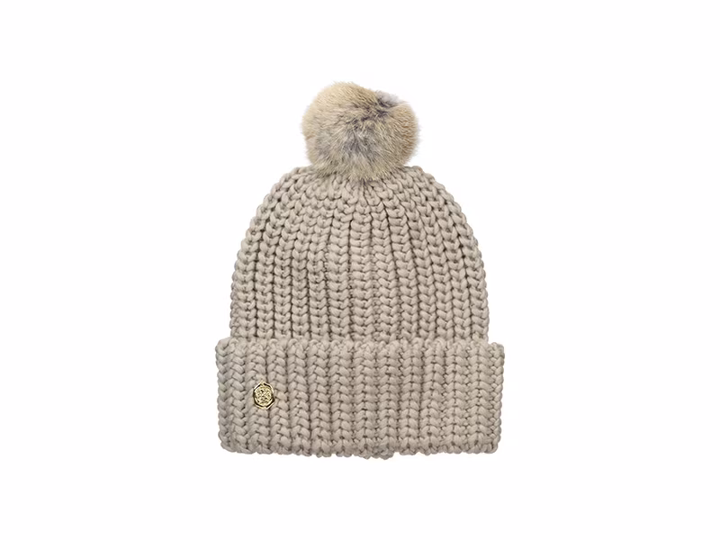 Vince Camuto Chunky Knit Cuff Beanie with Striped Pom