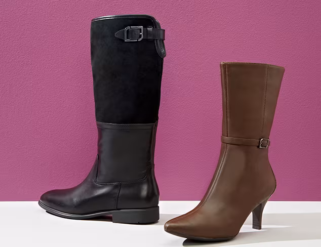 While neutral tones are successful year-round, there are some hues that just ooze the sentiment of a season. Take for example deep greens and burgundy. This collection offers an array of styles in these fall-perfect colors, from booties and tall boots to ballet flats and pumps.