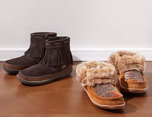 When you emerge from your oh-so-cozy cocoon of blankets in the morning, slip your feet into something equally toasty—a warm pair of slippers. Here, find a collection of slip-ons, mocs, ballet flat styles and more, all ready to cradle your feet in snug softness.