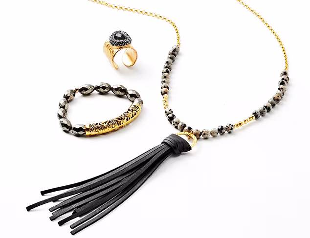 Edgy elements. Eclectic designs. Sparkling accents. Mix the bold and bright colors. Shine in the versatile combinations of hues, metallic finishes and gold-tone accents. Layer on an exotic, bohemian-inspired look.