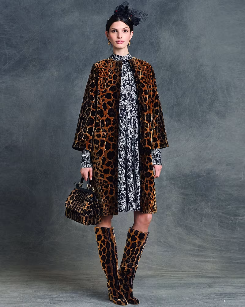 Dolce & Gabbana Embroidered Leopard-Print Coat, Dolce & Gabbana Floral-Print Button-Neck Dress