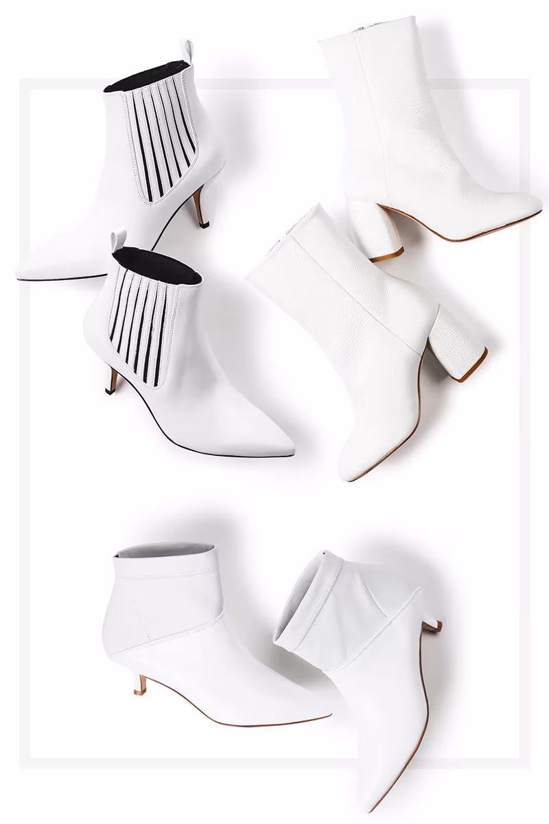 The Winter Shoe Refresh—Put your feet first this season with these 4 of-the-moment styles: striped kicks, kitten heels, white booties, and lugsole boots.