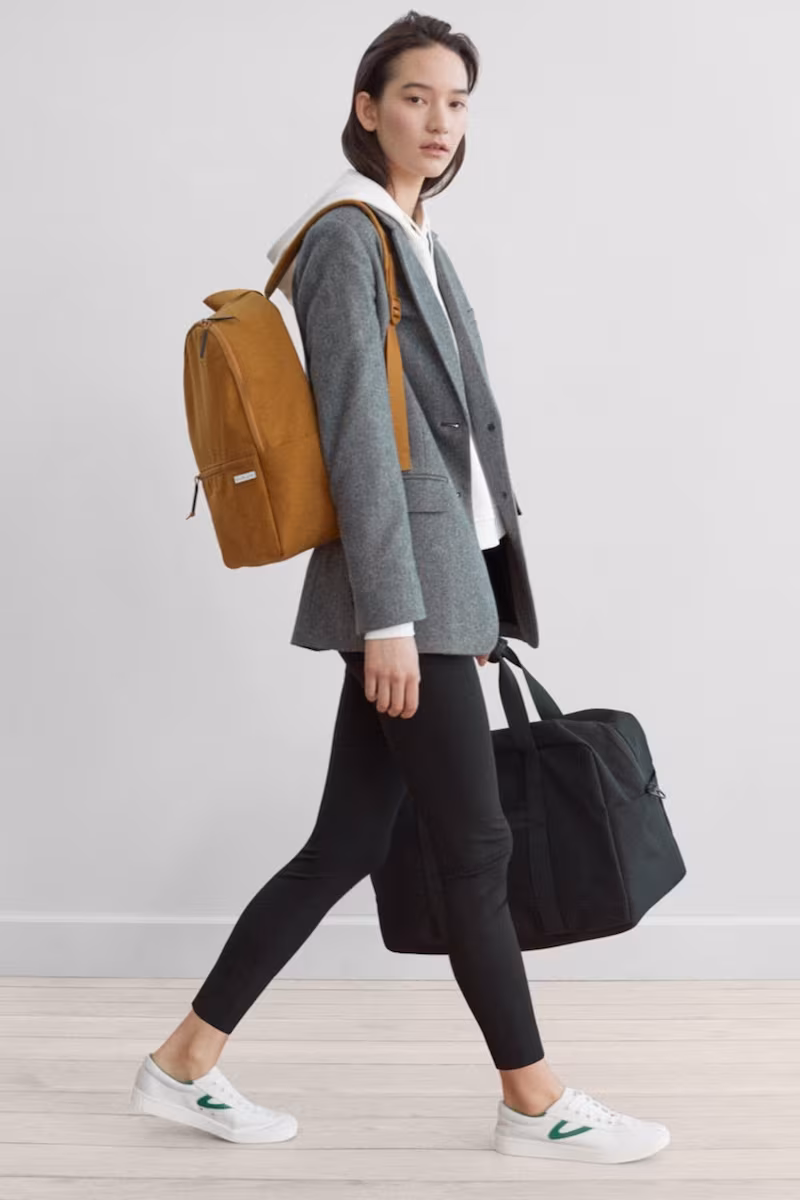 Everlane Oversized Blazer, Everlane Stretch Ponte Crop Pant, Everlane Street Nylon Zip Backpack, Everlane Nylon Weekender
