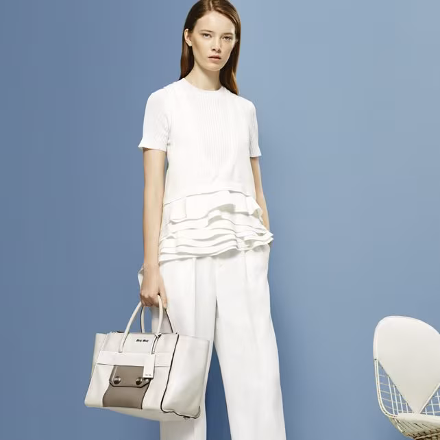 Miu Miu Leather tote, Haider Ackermann Tiered crepe top, Chloé Linen trousers