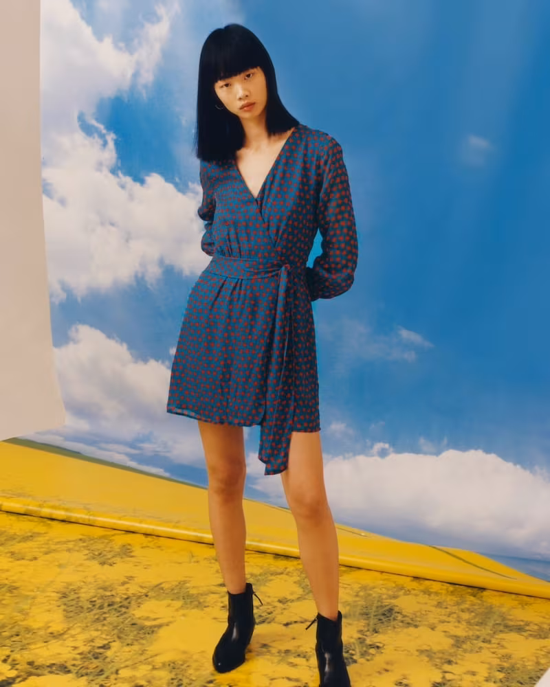 FiveSeventyFive Heart-Print Chiffon Wrap Minidress, FiveSeventyFive Leather Ankle Boots