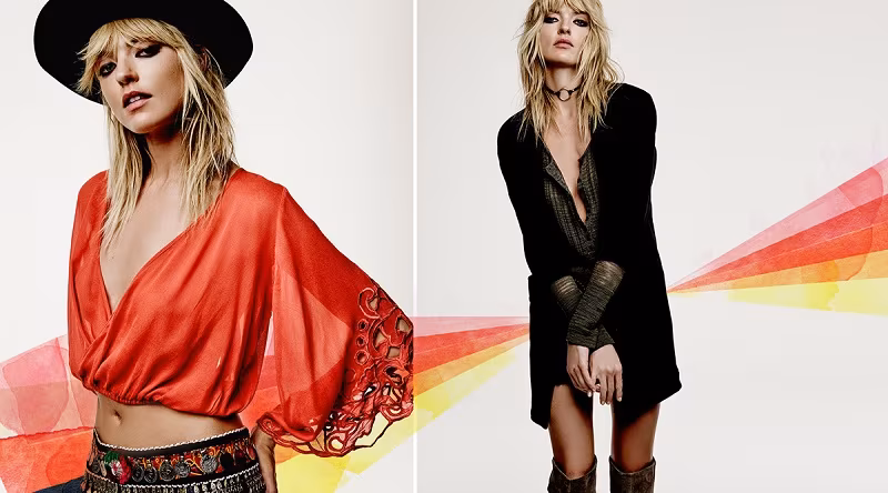 Styled retailer Free People is ready for music festival season with this new lookbook called "Go your own way", starring by Victoria’s Secret model Martha Hunt. Aiming to stand out the crowd and celebrate the scene in freewheeling layers, the festival 2015 collections have consistent the Free People style. Featuring everything from 90s inspired grunge to 70s bohemian vibes; we are obsessed with the cool outfits and choker inspiration. See the lookbook and find your special way to stand out the crowd in the festival!
