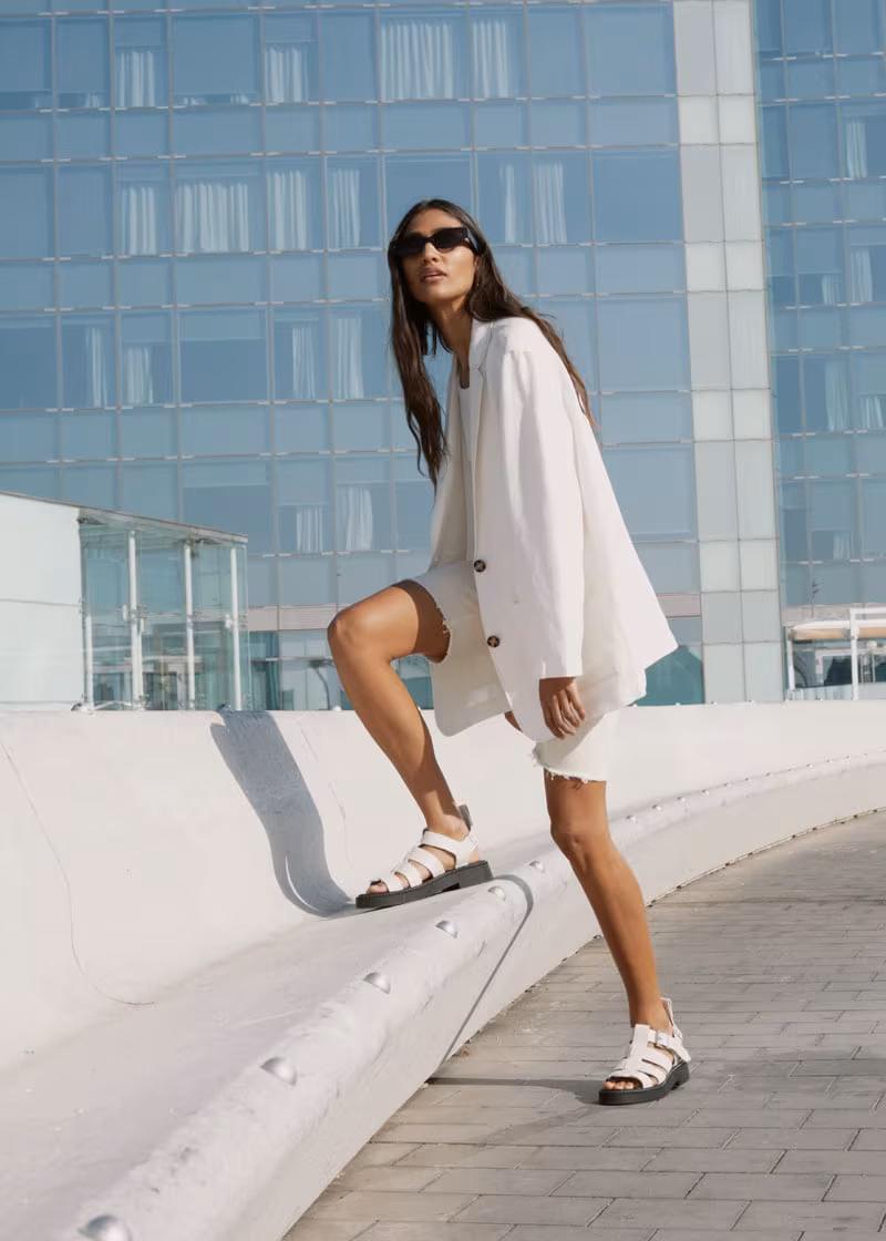 & Other Stories Oversized Tortoise Button Linen Blend Blazer, & Other Stories Raw Edge Denim Bermuda Shorts
