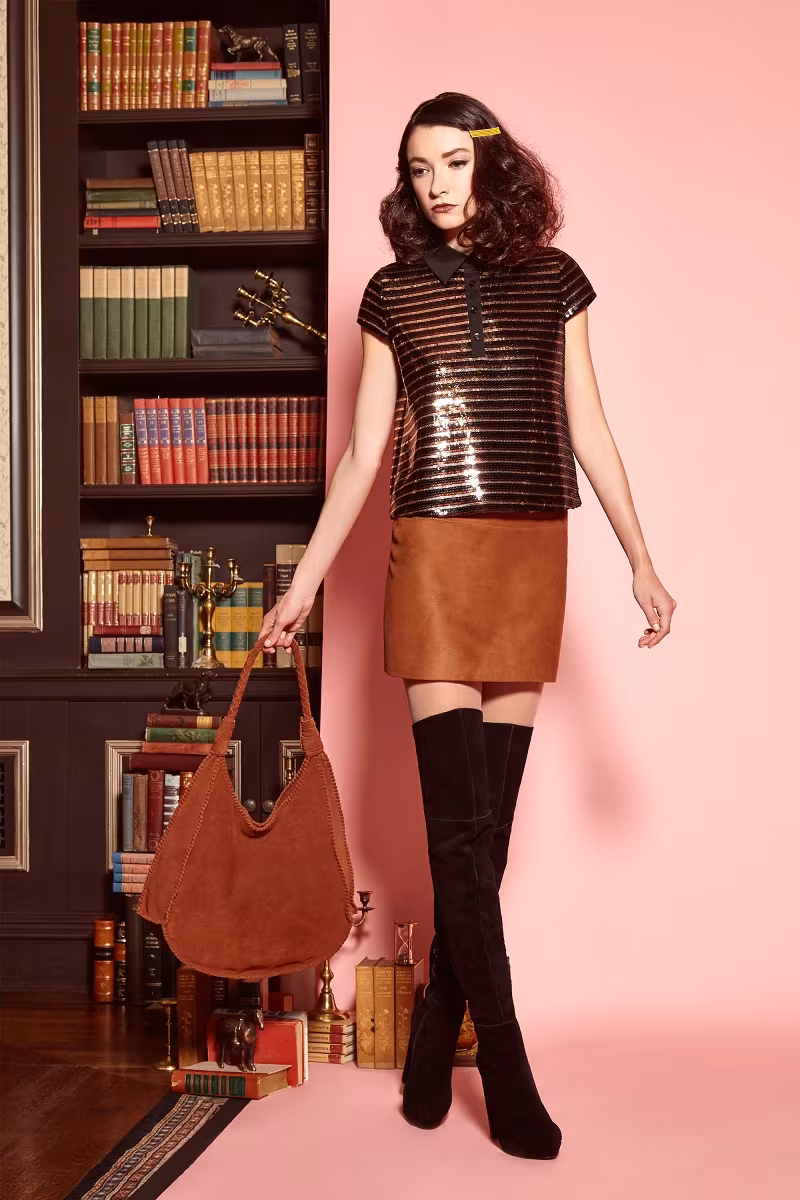 Designer of Alice + Olivia, Stacey Bendet worked a “librarian chic” mood, blurring the lines between sexy and studious in her latest pre-fall collection. Bendet’s idea of a librarian is one who wears embroidered denim pencil skirts, suede shorts, and semi-sheer dresses. “It was about taking these kind of retro-sexy dresses, but showing them with embroidery,” she said during a preview. “There’s a little twist to everything.” See the lookbook now!
