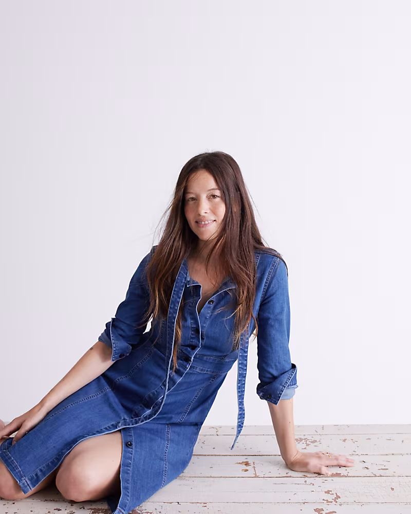 Madewell Denim Step-Hem Dress, Madewell Cruiser Straight Jeans: Shadow-Pocket Edition, Madewell Silk Bandana