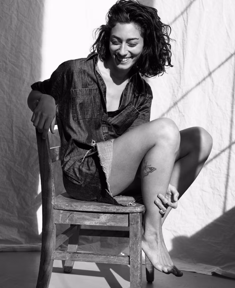 The latest Madewell denim-living muse, Argentina-born Conie Vallese. The now Brooklyn-based artist is known for her trademark black and white paintings and white sculptures. In time for the upcoming summer season, Conie showcased the label's denim shirtdress, skinny, short, and more.