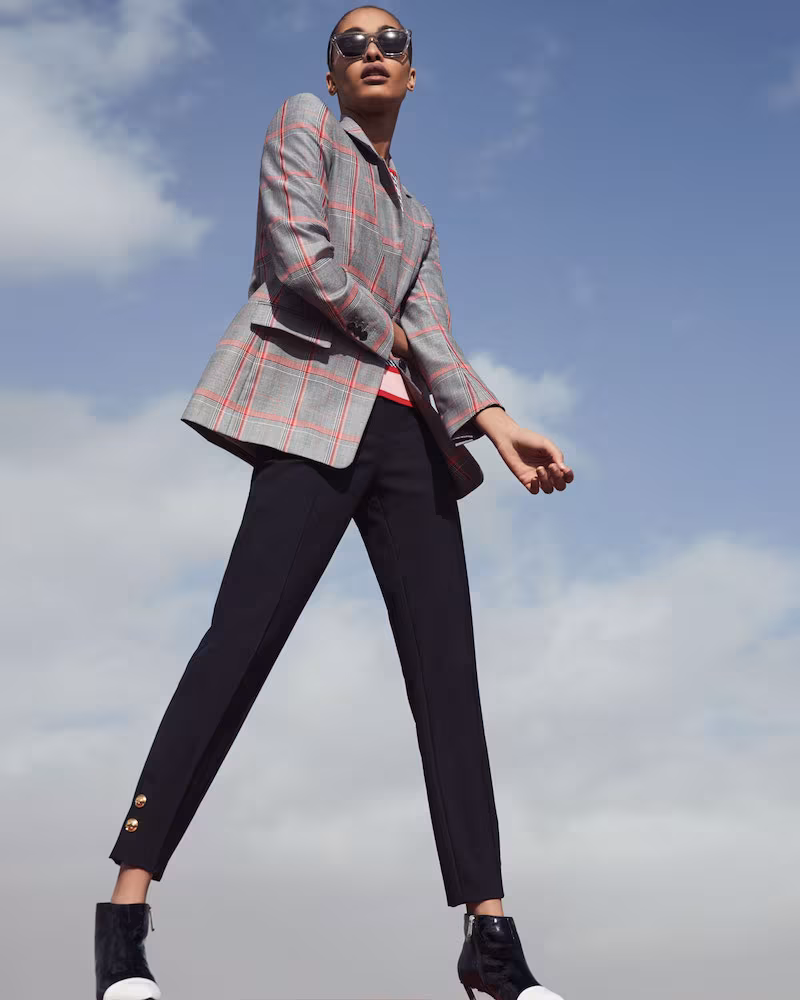 Escada Begastu Oversized Plaid Jacket, Escada Short-Sleeve Zigzag-Print Sweater, Escada J575 Five-Pocket Slim Jeans