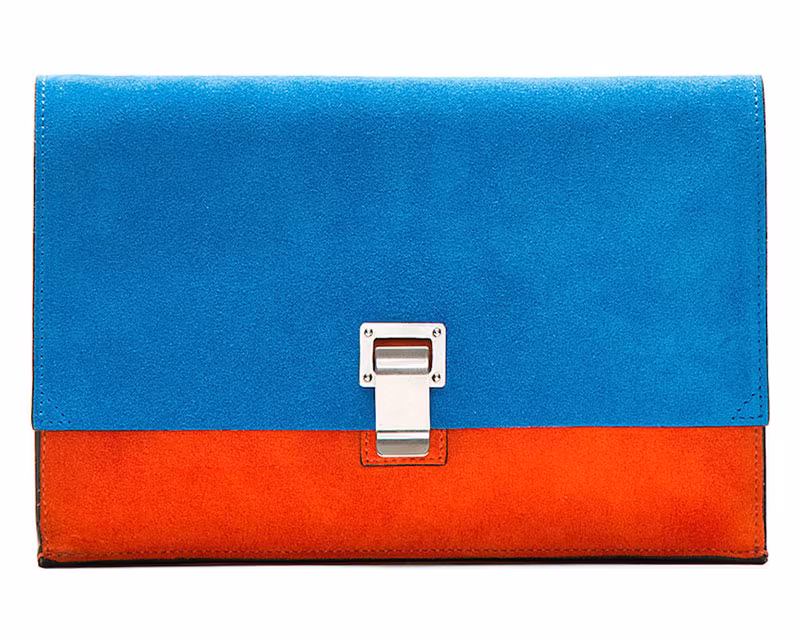 Proenza Schouler launch an exclusive Lunchbag clutch series for online retailer SSENSE, include three different cluthes, the bold hues meet colorblocked minimalism styles are ready for summer.
