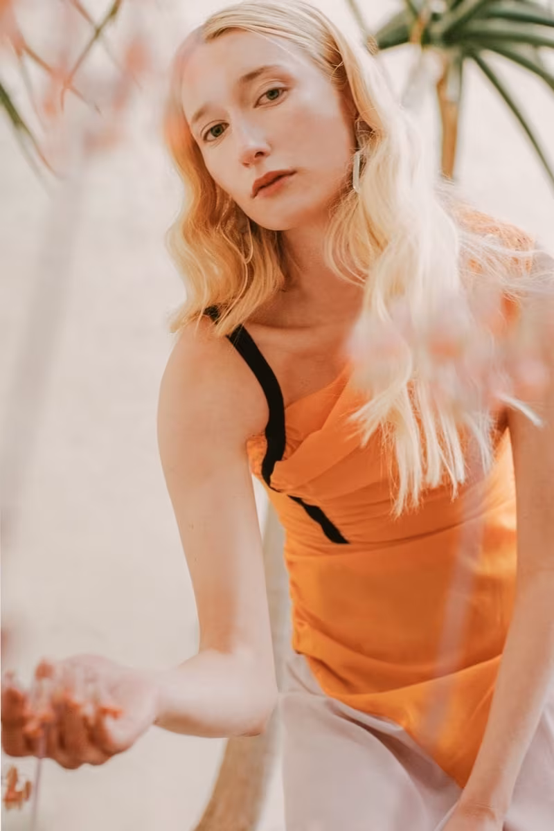 Rejina Pyo Lily Dress, Lizzie Fortunato Sal Flower Earrings, Marni Sling Back Shoe, Kate Young for Tura Lita in Amber