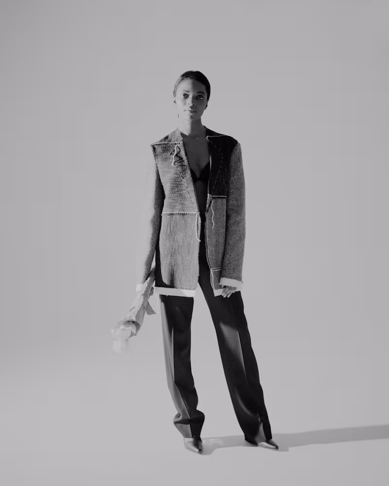 Stranger in the House of M—Who better to outfit an ode to "Film noir" than Maison Margiela, the brand founded by the notorious man of mystery. A jacket hangs on a clothes-rack, casting the shadow of a body. An impression stands in place of an identity. Obscurity is a character in and of itself. A loose white thread is evidence, an indication of the process—motive that throws convention to the curb.
