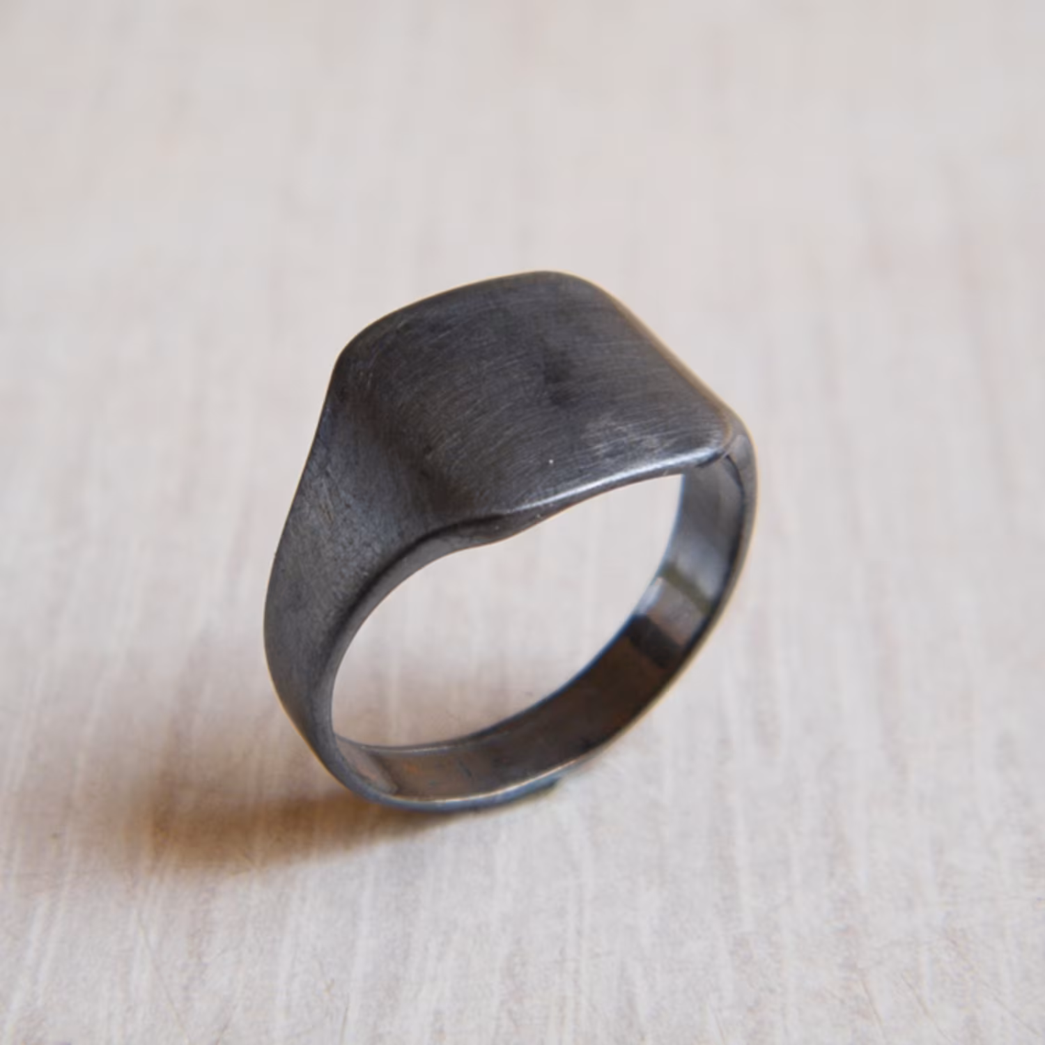 Carved from a wax bloc, this Square Ring was crafted from hand in a soft square shape, making it bold but light weight. This casual everyday ring makes a clean bold statement in silver.