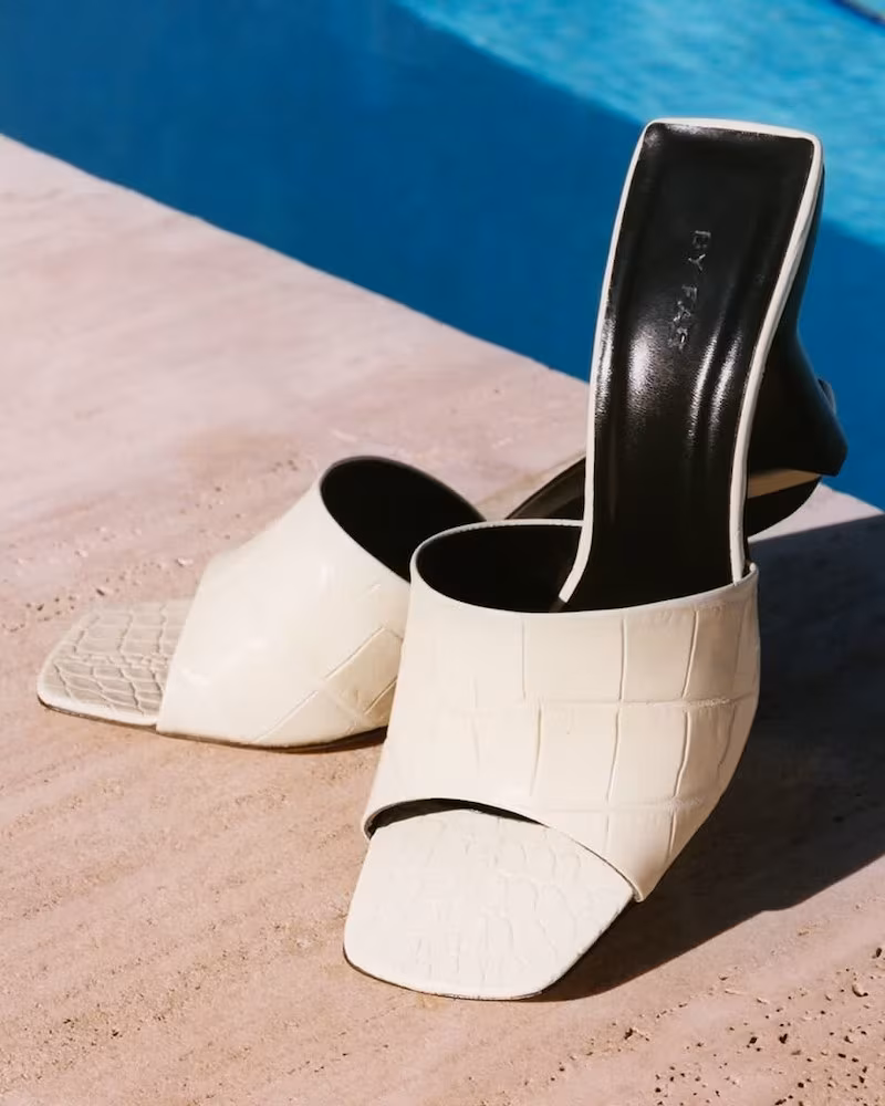 By Far 90mm Liliana Croc Embossed Leather Mules