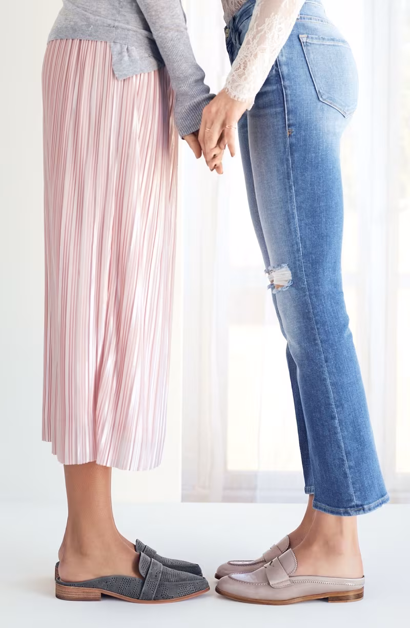 Right: AGL Penny Slide Loafer, FRAME Le Crop Mini Boot Jeans, Chelsea28 Sheer Lace Top