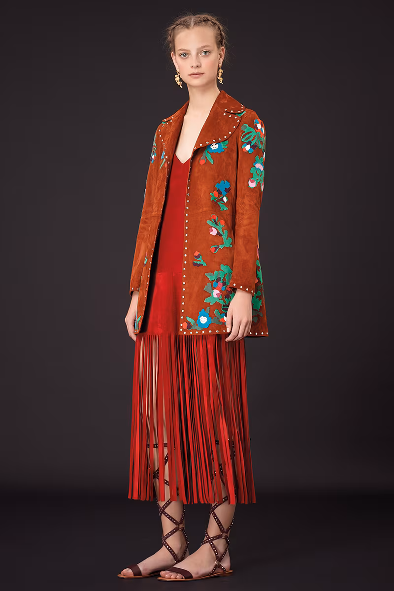 Valentino Resort 2015 Collection transitioned from the demure classical floral embroidered pieces to retro psychedelic pop art with a few select pieces shot in a completely different setting. he new Resort 2015 consistently keep the magnificent noble blood, luxurious palace style, the fine embroidery, lace interwoven pattern carved and printed out, at all times with the debut of clothing styles, again the creation of an entirely refreshing!
