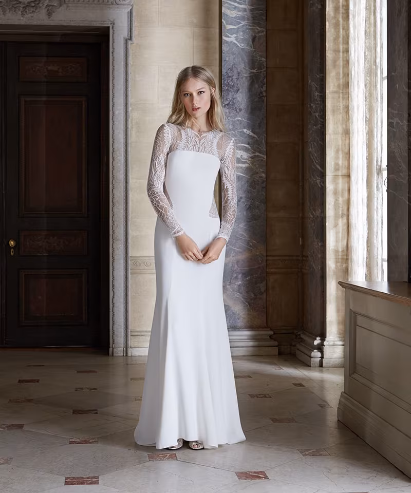 Monique Lhuillier Halle Long Sleeve Sheath Gown