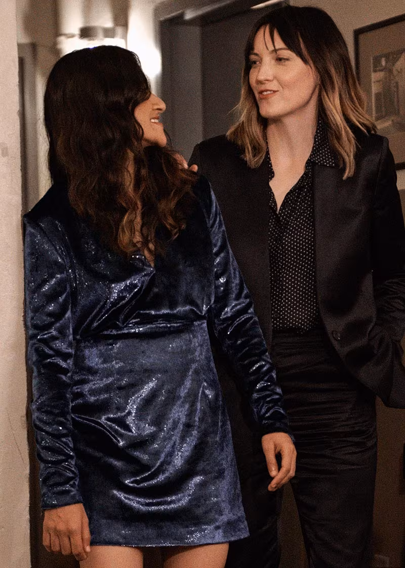 Stand Up and Stand Out—& Other Stories's latest editorial for holiday season – women in comedy. In a holiday film set in one of L.A.’s iconic theatres, follow comedians Aparna Nancherla and Jen Kirkman helping each other getting ready for the stage. See the film and get inspired to stand out in some effeminate fringed frocks, sleek tuxedo-inspired ensembles, powerful glitzy dresses and, yes, a pretty genius full-on-sequin suit.